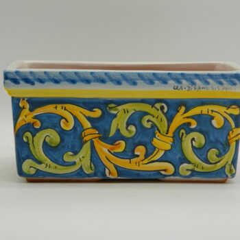 Fioriera rettangolare dipinta a mano con decoro rosone verde