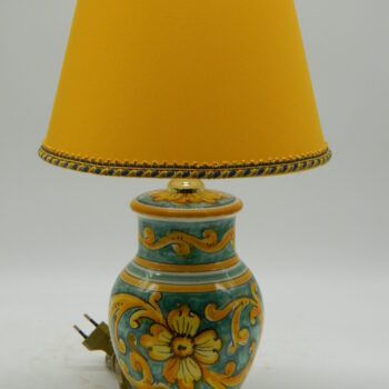 completo di paralume lavabile in tessuto avorio e passamaneria blu e oro