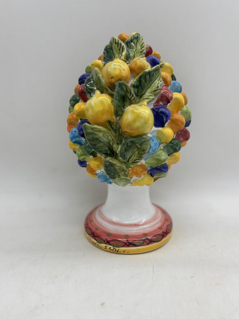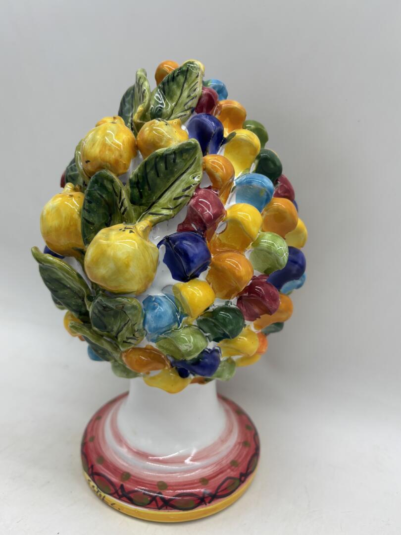 Splendida pigna in ceramica siciliana, un classico intramontabile per decorare la casa. Perfetta per aggiungere un tocco di colore e tradizione.