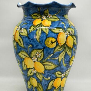 Portaombrello modello a giara color panna,impreziosito da intaglio realizzato a mano sul bordo