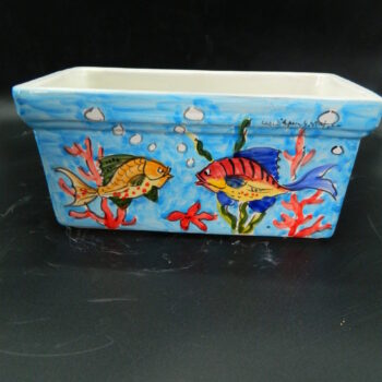 Portavaso in ceramica dipinto a mano con decoro barocco e fondo bordeaux