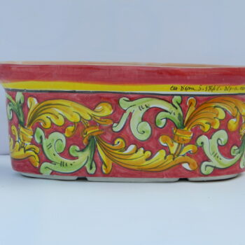 Portavaso in ceramica dipinto a mano con decoro fichi d’india a fondo blu