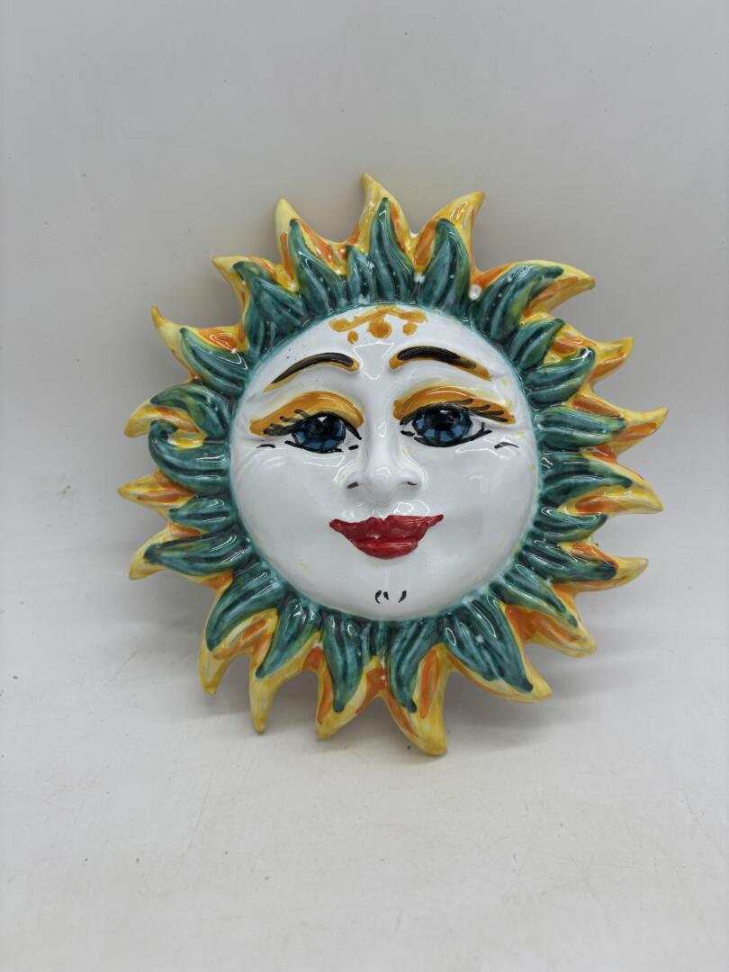 Splendido sole in ceramica siciliana, un pezzo decorativo unico.