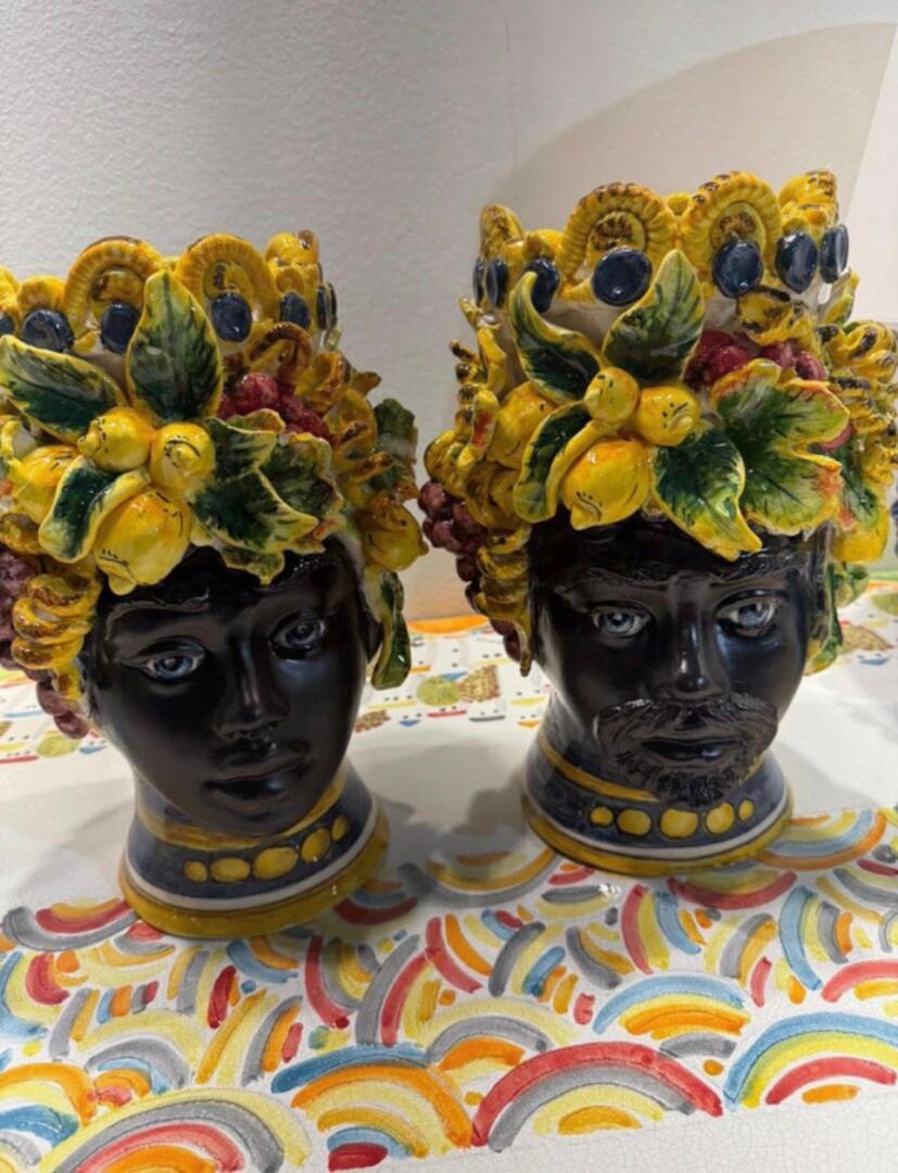 Ogni Testa di Moro è splendida già da sola come soprammobile ma può essere utilizzata come vaso da riempire con fiori e piante. Arte e Storia si fondono in questi vasi, la cui creazione (anno 1100 circa) prende spunto da una relazione d’amore particolare nata tra due giovani ai tempi della dominazione araba in Sicilia. N.B.: Si certifica che ogni prodotto è stato interamente realizzato a mano e che eventuali “piccole imperfezioni” sono tipiche della lavorazione artigianale più preziosa di quella industriale. Ogni realizzazione è unica per Voi, infatti, non troverete mai due pezzi identici.
