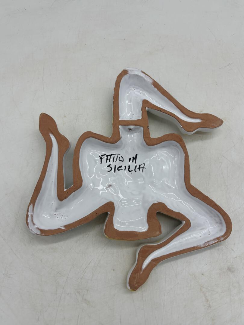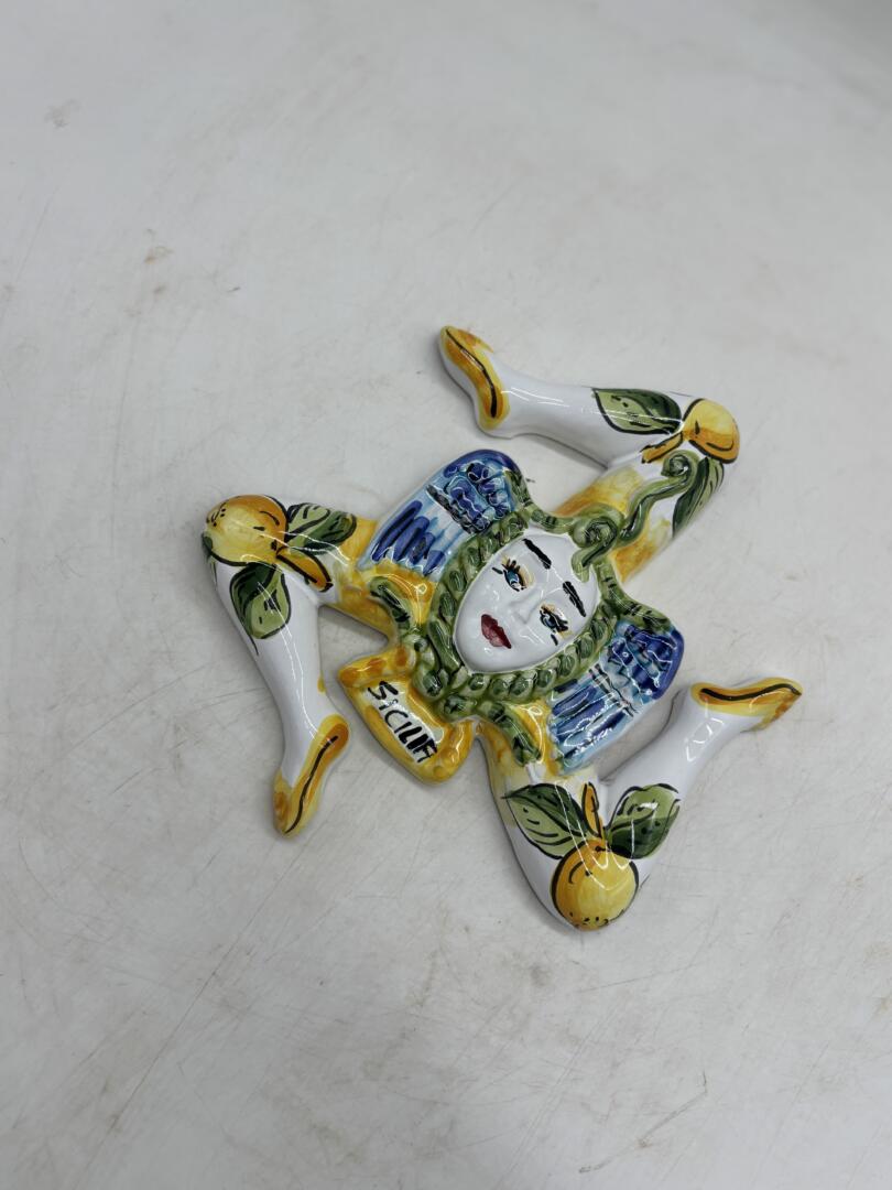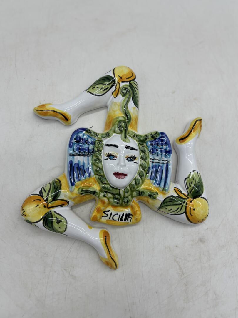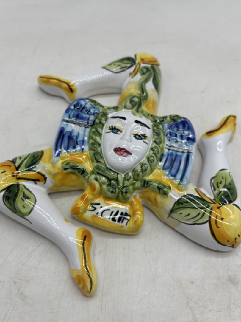 Bellissimo simbolo della Trinacria realizzato in ceramica siciliana. Un pezzo decorativo unico.